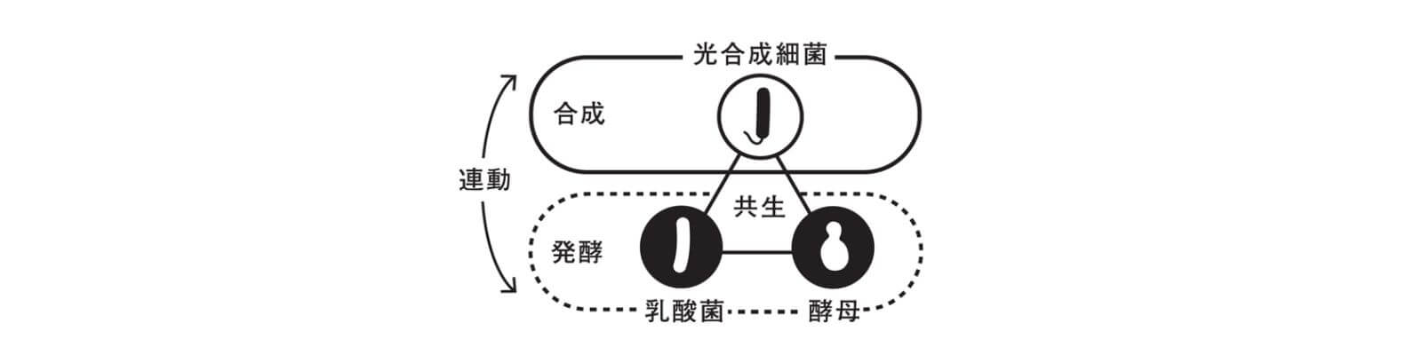 自然の中にいる安全な3種類の善玉菌(光合成細菌、乳酸菌、酵母)が中心となり、菌たちがたくさんの「発酵」を繰り返して、作られています。